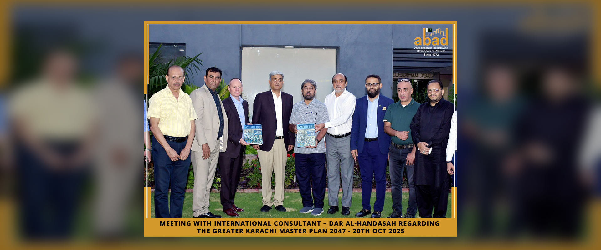 ASSOCIATION OF BUILDERS AND DEVELOPERS OF PAKISTAN (ABAD) is a national level representative organization of builders and developers, formed in the year 1972 with the aim and objective of unifying and streamlining the construction activities of private sector. ABAD is registered under the Companies Ordinance, 1984 with Registration No. KAR No. 4967 of 1977-78 and licensed under Trade Organizations Ordinance, 2007 and it’s affiliated with the Federation of Pakistan Chamber of commerce and Industry (FPCCI).