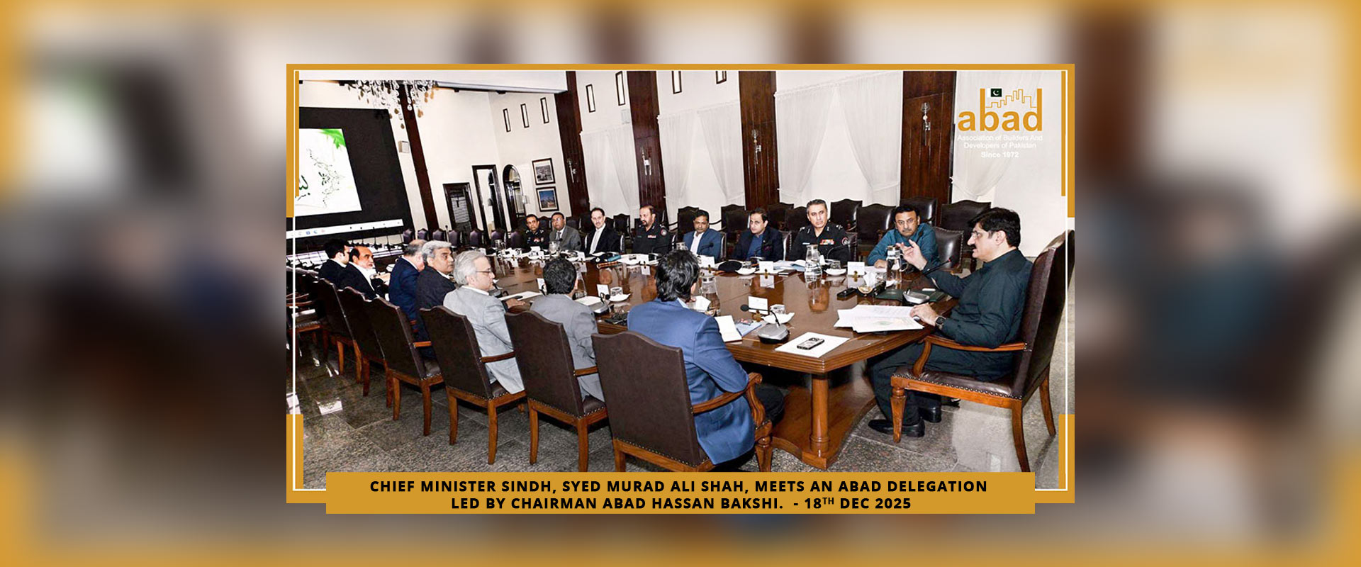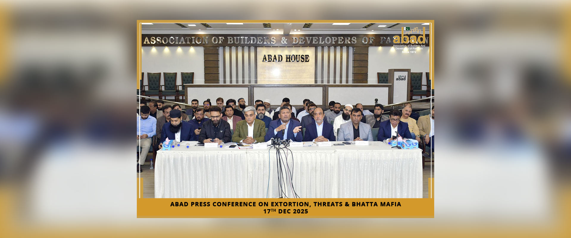ASSOCIATION OF BUILDERS AND DEVELOPERS OF PAKISTAN (ABAD) is a national level representative organization of builders and developers, formed in the year 1972 with the aim and objective of unifying and streamlining the construction activities of private sector. ABAD is registered under the Companies Ordinance, 1984 with Registration No. KAR No. 4967 of 1977-78 and licensed under Trade Organizations Ordinance, 2007 and itโs affiliated with the Federation of Pakistan Chamber of commerce and Industry (FPCCI).
