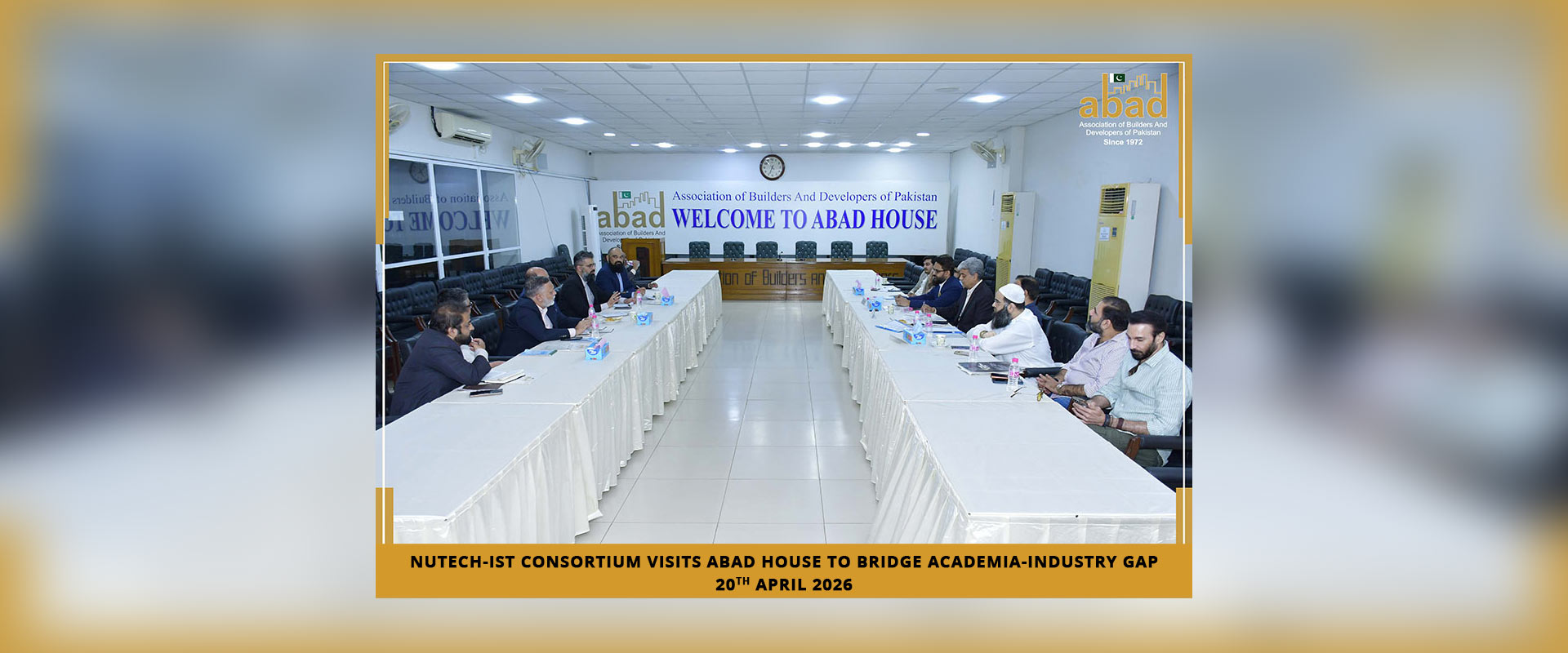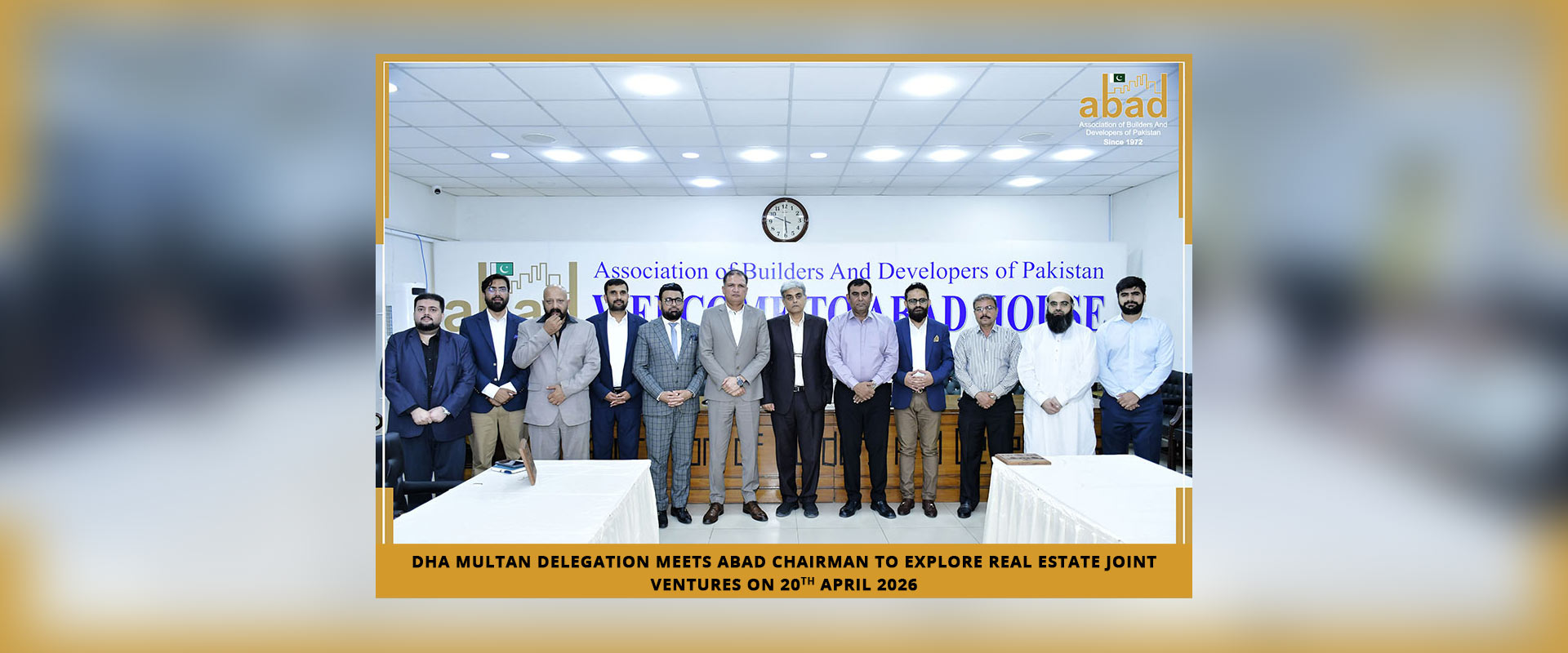 ASSOCIATION OF BUILDERS AND DEVELOPERS OF PAKISTAN (ABAD) is a national level representative organization of builders and developers, formed in the year 1972 with the aim and objective of unifying and streamlining the construction activities of private sector. ABAD is registered under the Companies Ordinance, 1984 with Registration No. KAR No. 4967 of 1977-78 and licensed under Trade Organizations Ordinance, 2007 and it’s affiliated with the Federation of Pakistan Chamber of commerce and Industry (FPCCI).
