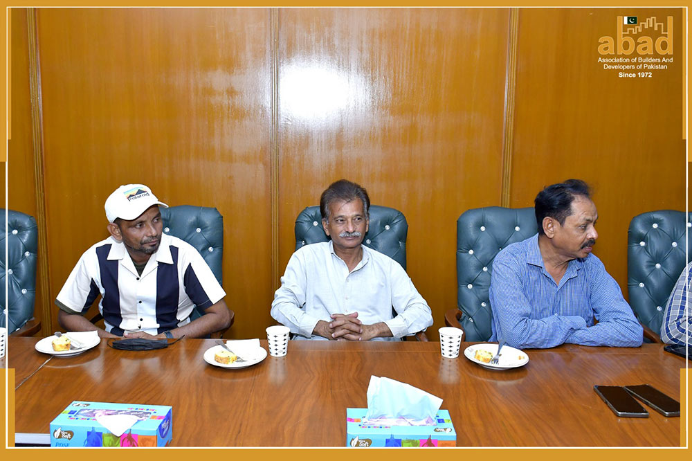 Chairman ABAD Muhammad Hassan Bakshi and Vice Chairman ABAD Tariq Aziz met with the delegation of Abkar Workers Democratic Alliance at ABAD House. The meeting focused on the issues of water shortage and fair distribution in Karachi. Chairman ABAD assured the delegation of his full cooperation. The delegation was led by Syed Rashid, Chairman and Central Leader of the Alliance, along with other representatives of the Water & Sewerage Corporation.