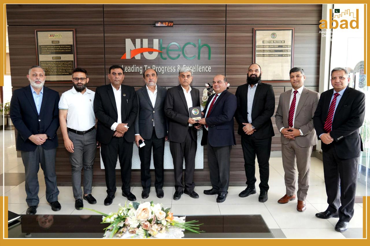 A delegation from ABAD, led by Chairman Mr. Muhammed Hassan Bakshi, Senior Vice Chairman Mr. Afzal Hameed, Vice Chairman Mr. Tariq Aziz and Chairman Southern Region Mr. Owais Thanvi visited NUTECH University in Islamabad. The ABAD delegation was warmly welcomed by Rector Lt Gen Moazzam, Pro-Rector Maj Gen Khurram Qadri, Registrar Dr. Adnan and NUTECH University Management.